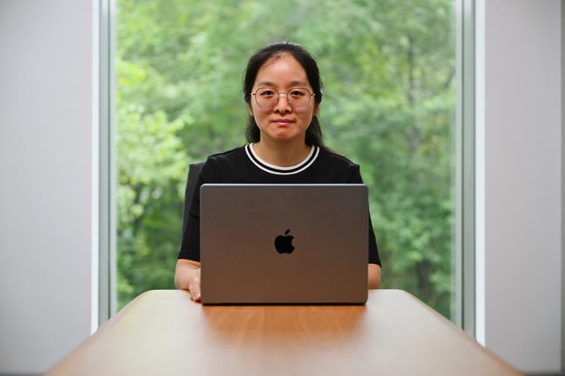 JAXのポスドク研究員のDr. Cuijuan Han(ツイジュアン・ハン):Dr.ワンの研究室では、白血病細胞の生存、分化、そして治療への反応を制御する遺伝子調節メカニズムの研究に取り組んでいる。